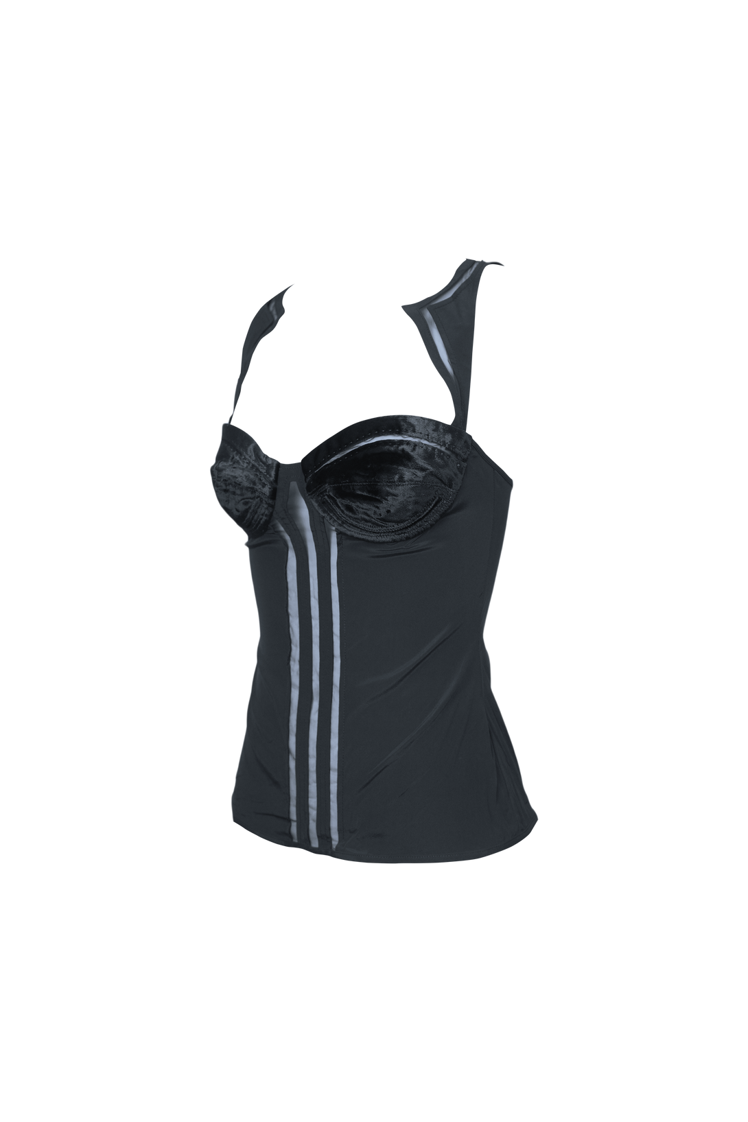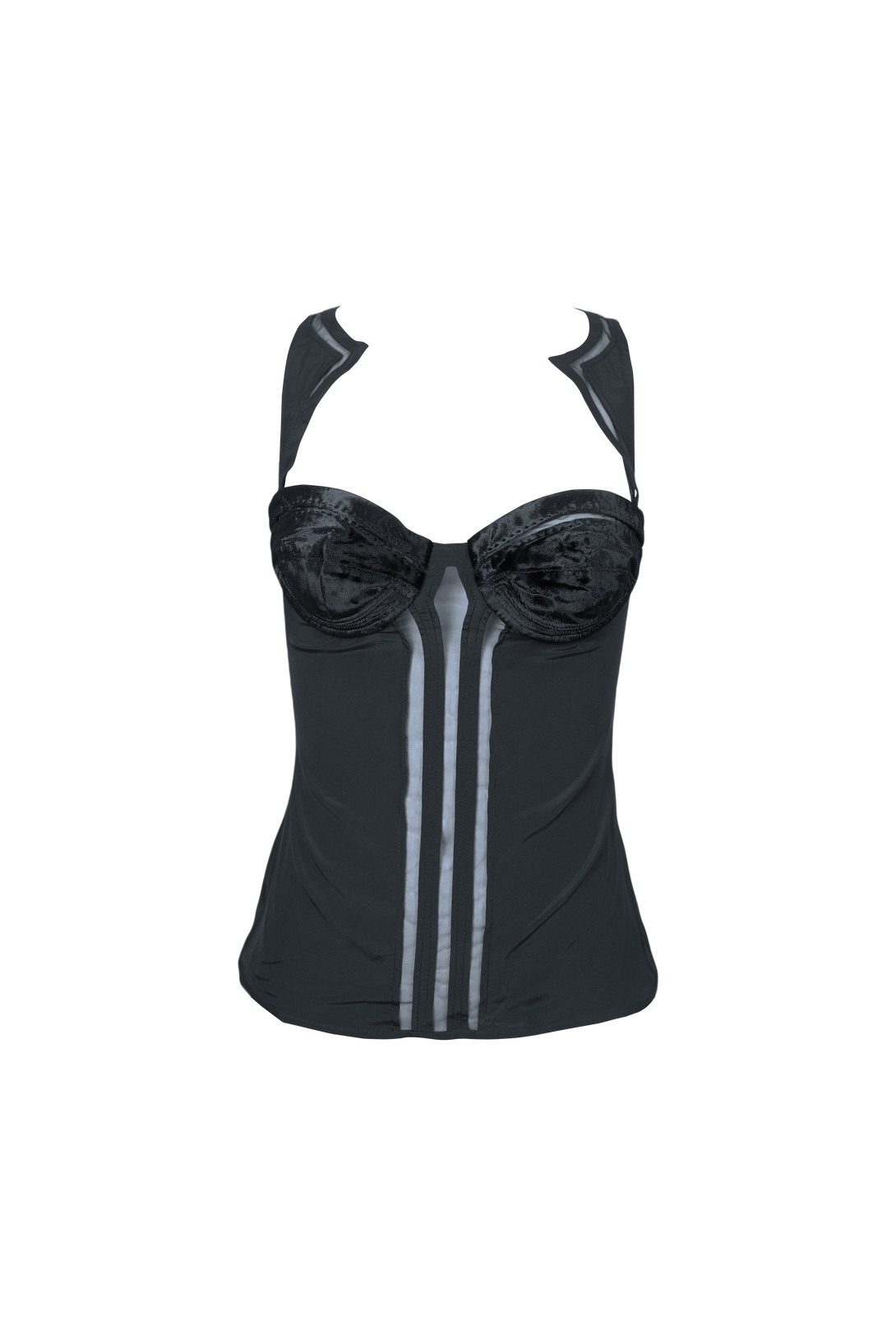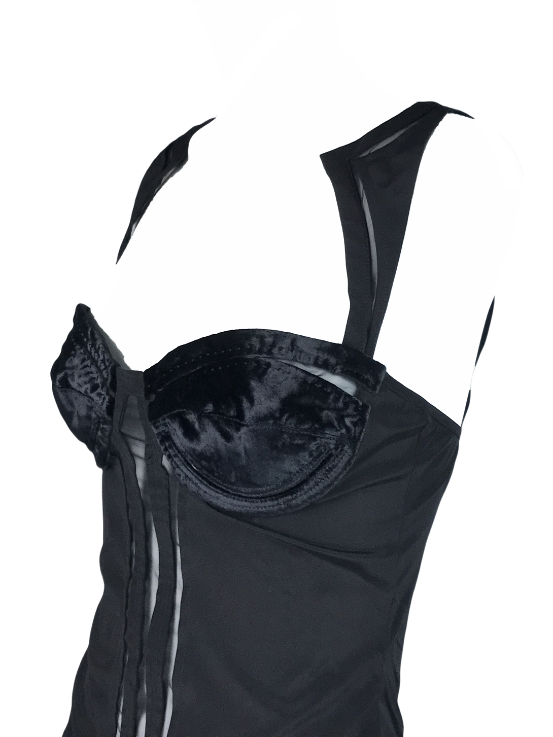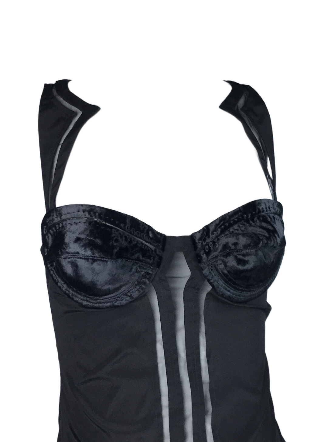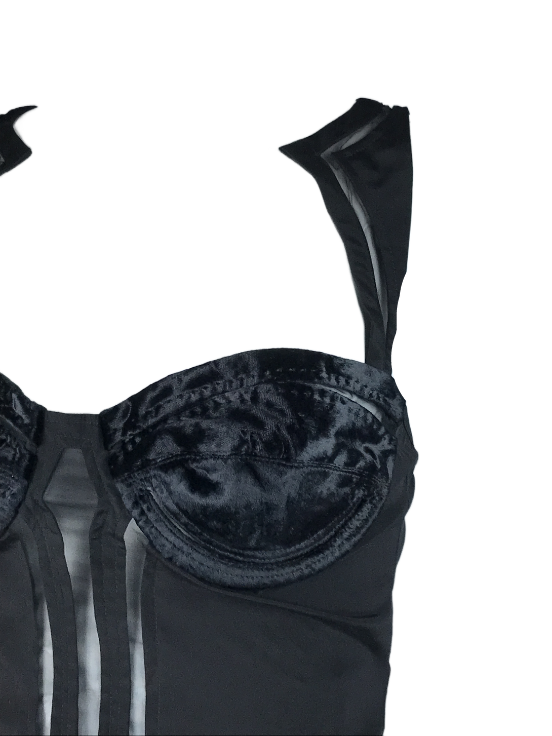 S/s 2005 Black Velvet Corset Top with Satin Detail