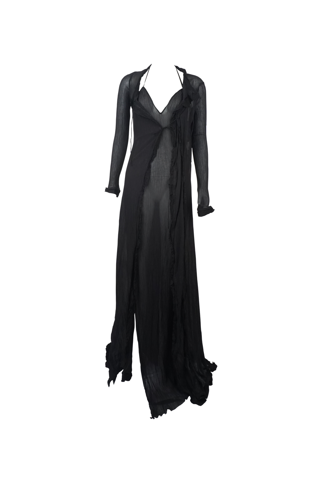 S/s 2002 Sheer Asymmetric Black Duster Coat Maxi Dress Set