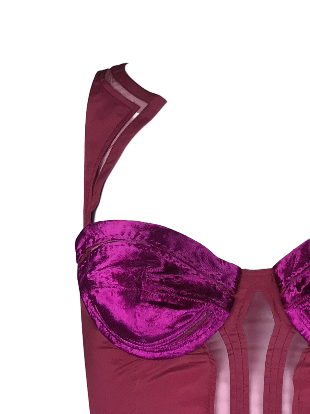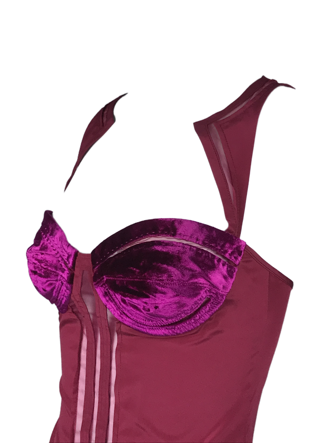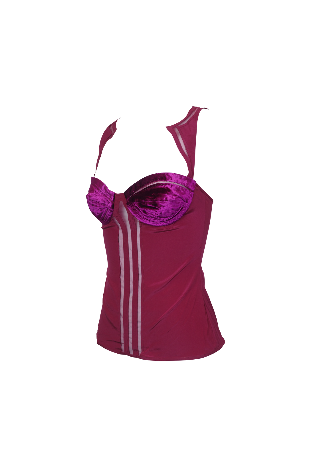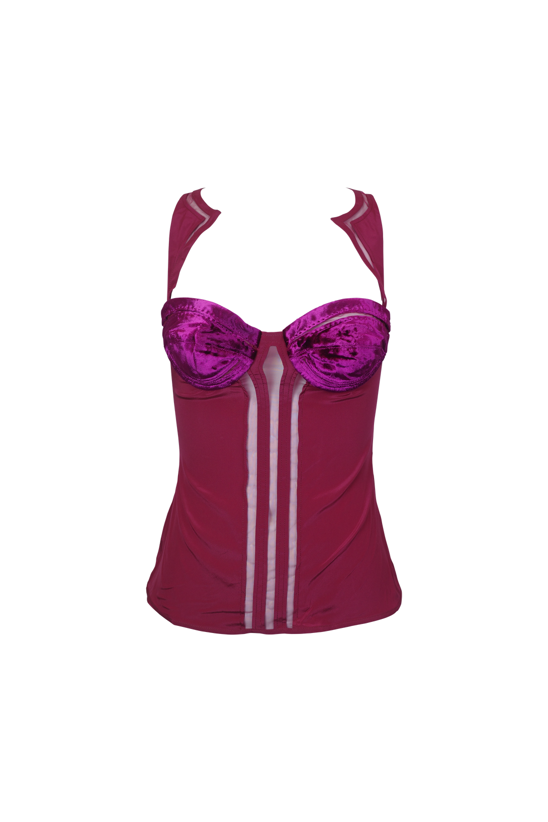 S/s 2005 Fuchsia Velvet-Trim Corset Top